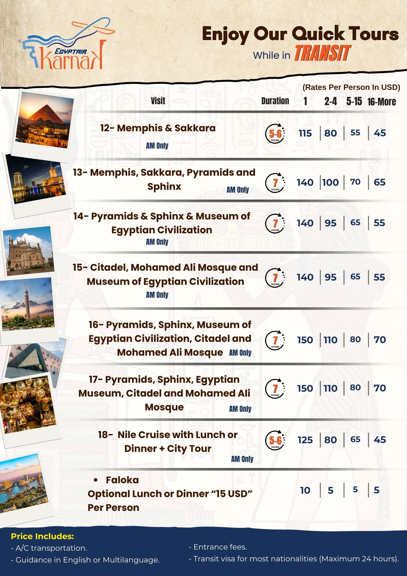 For further information, please do not hesitate to contact us anytime: E-mail: Transit@egyptair.com Mobile : +201114374369 What's App : +201285311558 |